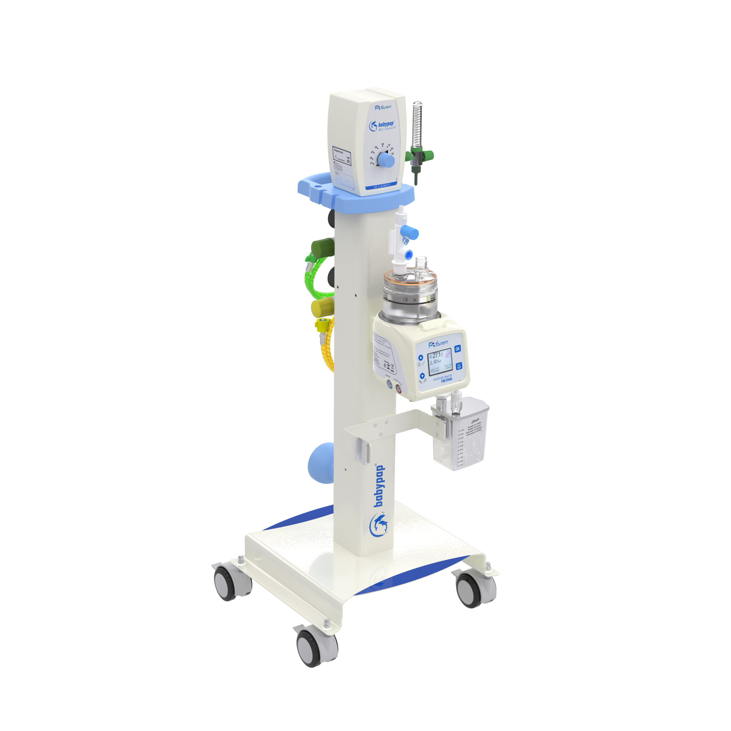 O Babypap® possui fornecimento ajustável da pressão positiva contínua nas vias aéreas mediante a oferta de fluxo contínuo da mistura de ar comprimido e oxigênio, aquecida e umidificada, além de em uma pressão expiratória final controlada por meio de coluna de água e borbulha. O nosso CPAP de bolhas opera em conjunto com o umidificador FOG 2140 A, otimizando a temperatura entregue ao paciente e diminuindo a condensação de água.