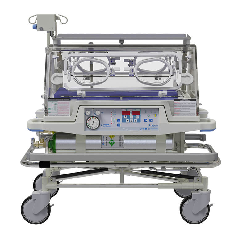 Para o transporte do recém-nascido com um microclima uniforme e estável com acesso fácil para atender o paciente em situação de transporte seja intra-hospitalar, ambulâncias, aeronaves, embarcações e outros meios de transporte. Esta versão incorpora o Reanimador neonatal Babypuff ® 1020 em sua composição, integrado à estrutura.