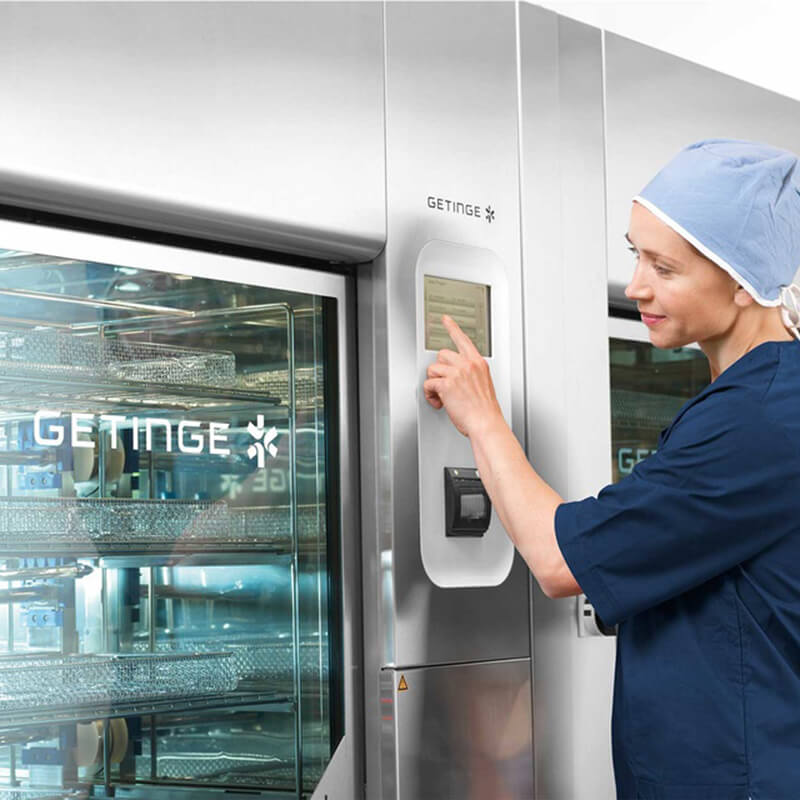 As termodesinfectoras Getinge 86-series utilizam os métodos mais eficientes para aquecimento de água e ar de secagem. Tecnologia inteligente garante que a secagem pare quando um nível definido de umidade interna é atingido ao operar com carga parcial (opcional).