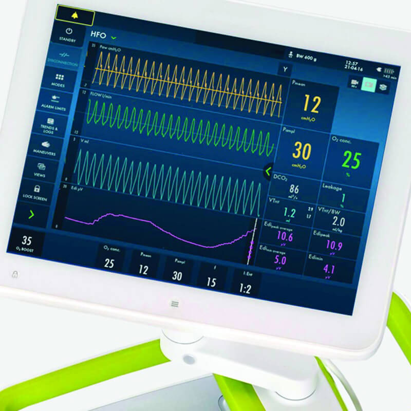 Você quer monitorar o impulso respiratório do bebê desde o primeiro dia? Consegue visualizar literalmente o que ele precisa, em qualquer modo, direto na sua tela inferior? No Servo-n, isso é possível com nosso exclusivo monitoramento diafragmático Aedi.[2],[3],[4] Ele fornece informações valiosas sobre a assincronia entre paciente e ventilador, a presença ou ausência de respirações espontâneas, apneia, esforço do paciente, excesso e falta de assistência, sedação e posicionamento do paciente.